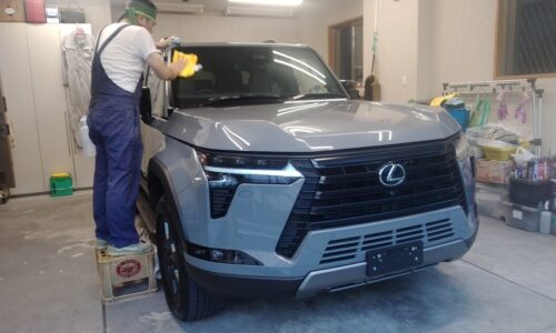 古いお付き合いのお客様LSのガラスのうろこでご入庫です。必死で磨いてオーナー様待ち時間 暇なので御手伝い頂いて …